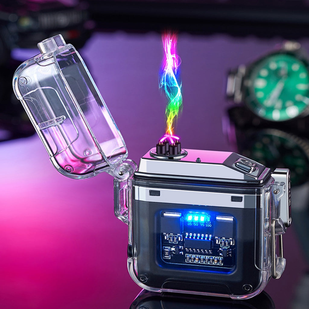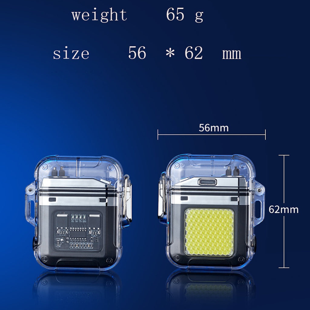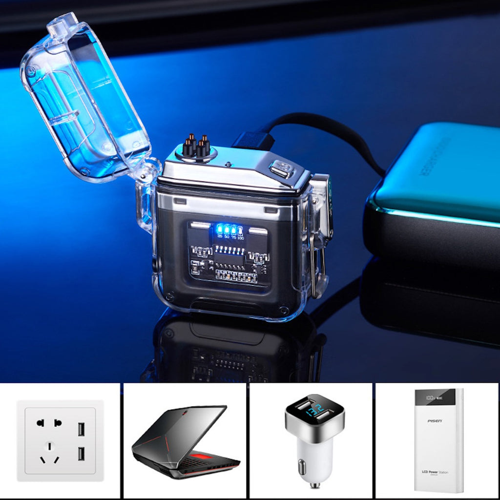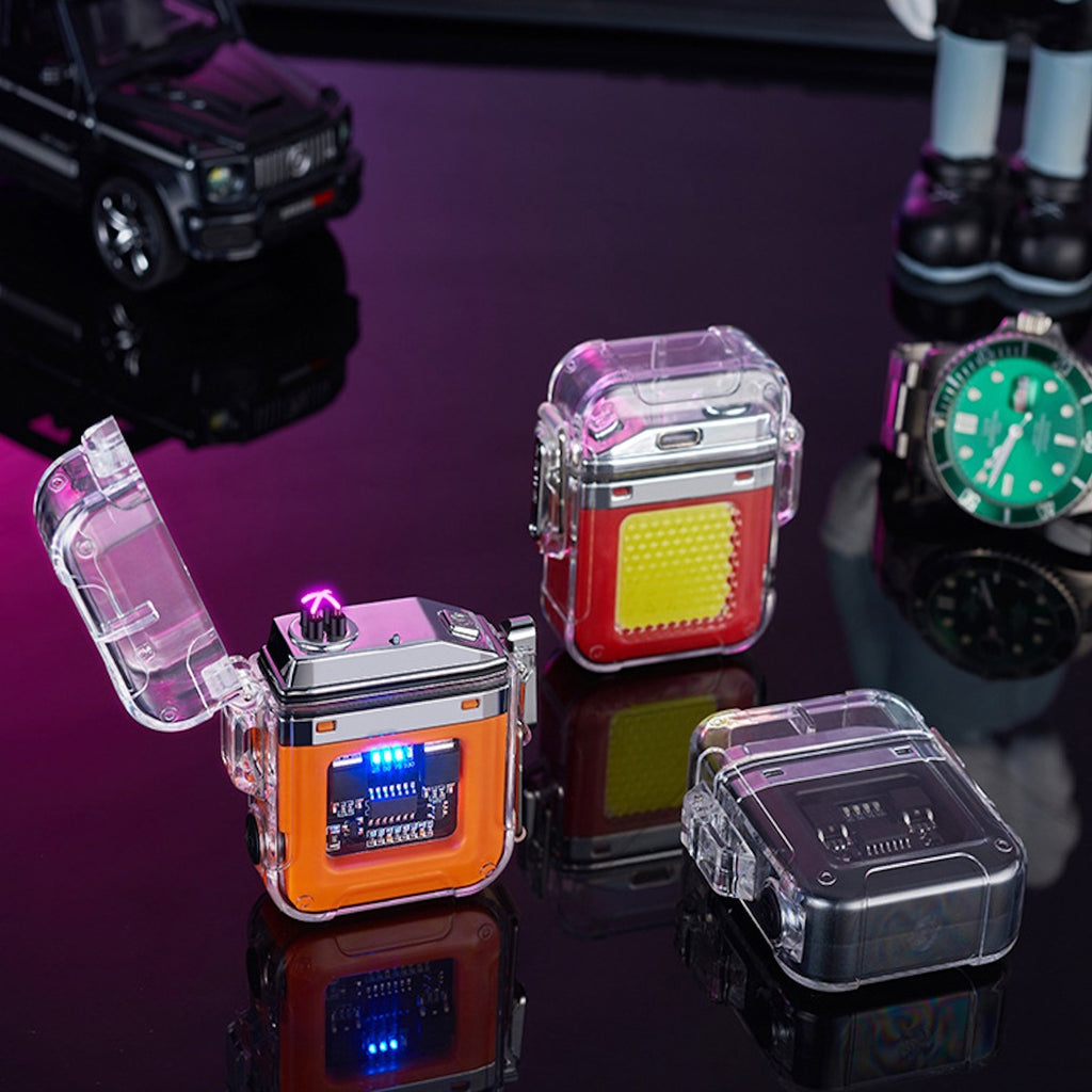 A/O Isqueiro Plasma + Super Lanterna Transparente USB é um acessório essencial para camping e atividades ao ar livre.