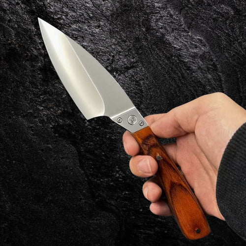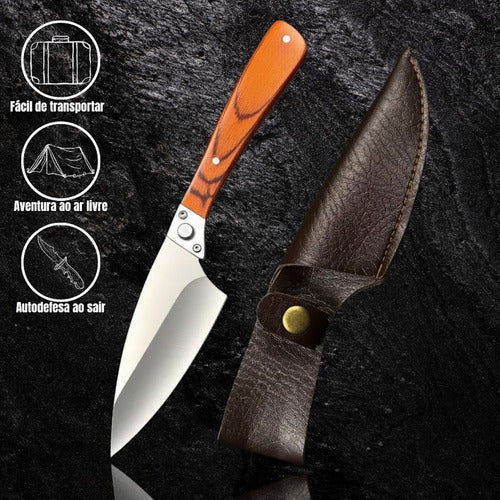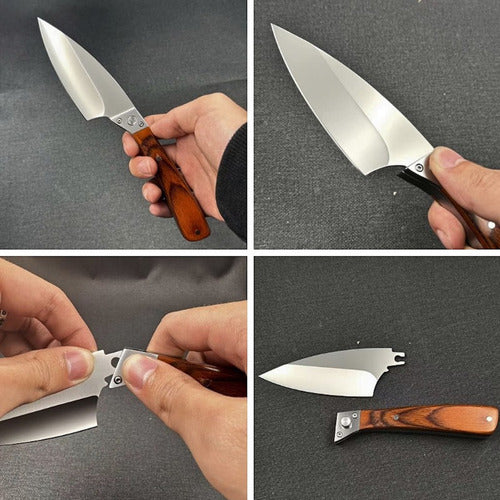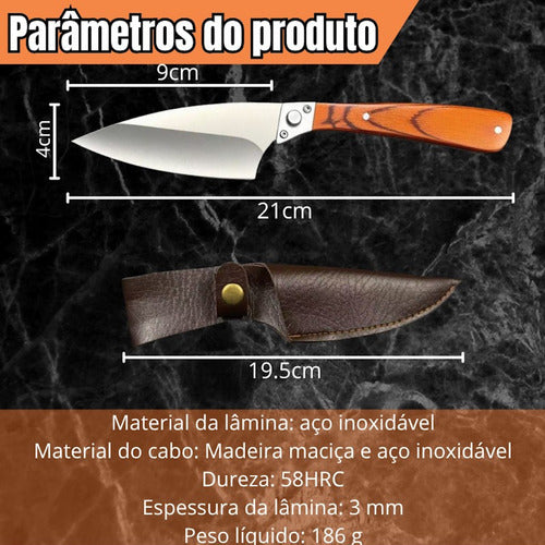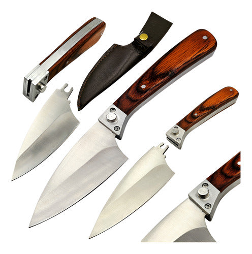 Faca Cozinha Lâmina Removível Cabo Madeira + Bainha Couro