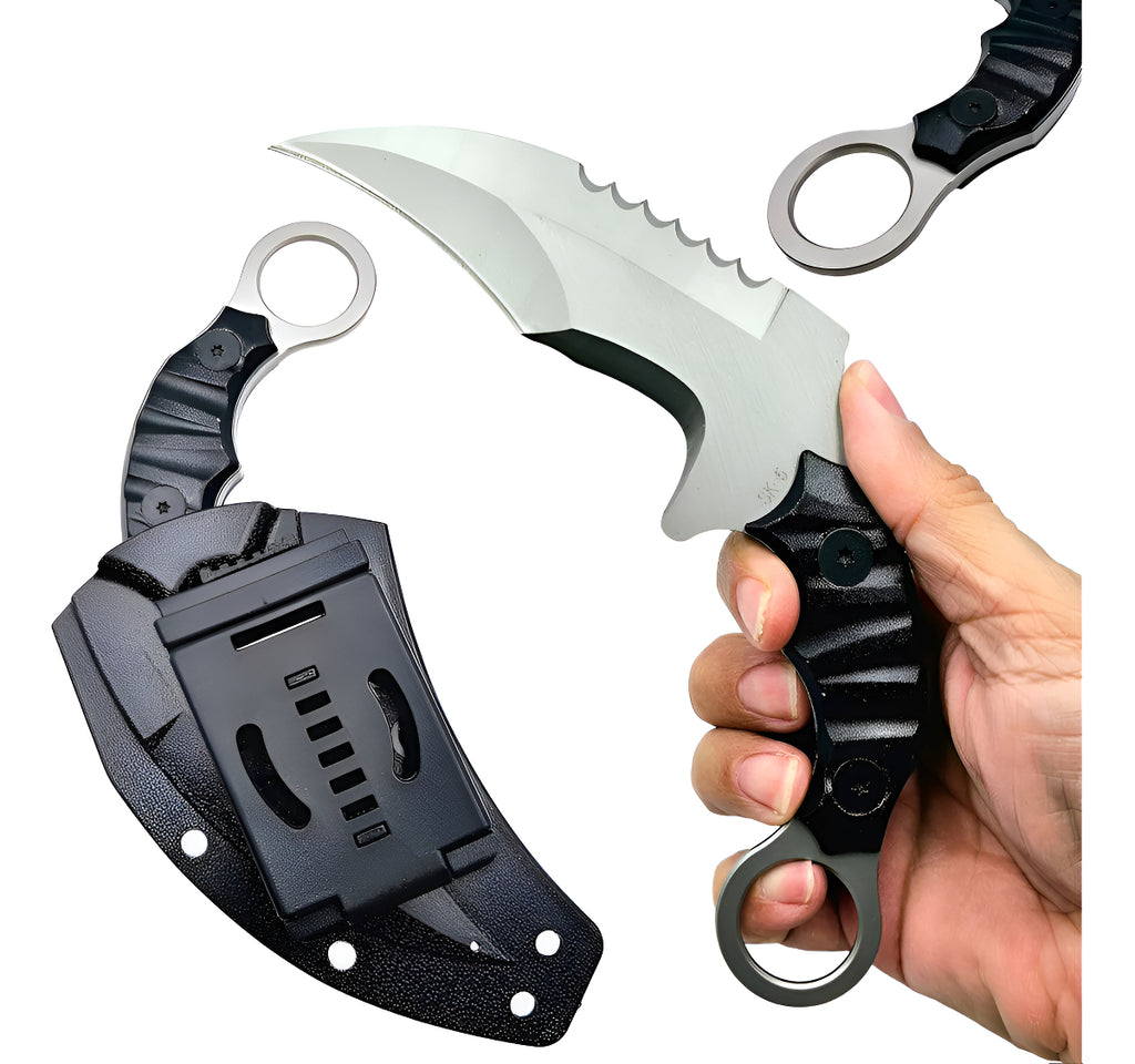A/O Faca Curva Anaconda Aço Inox Prata Escovado + Kydex SK5 é uma faca de alta performance para uso em campo, caça, pesca e atividades ao ar livre.