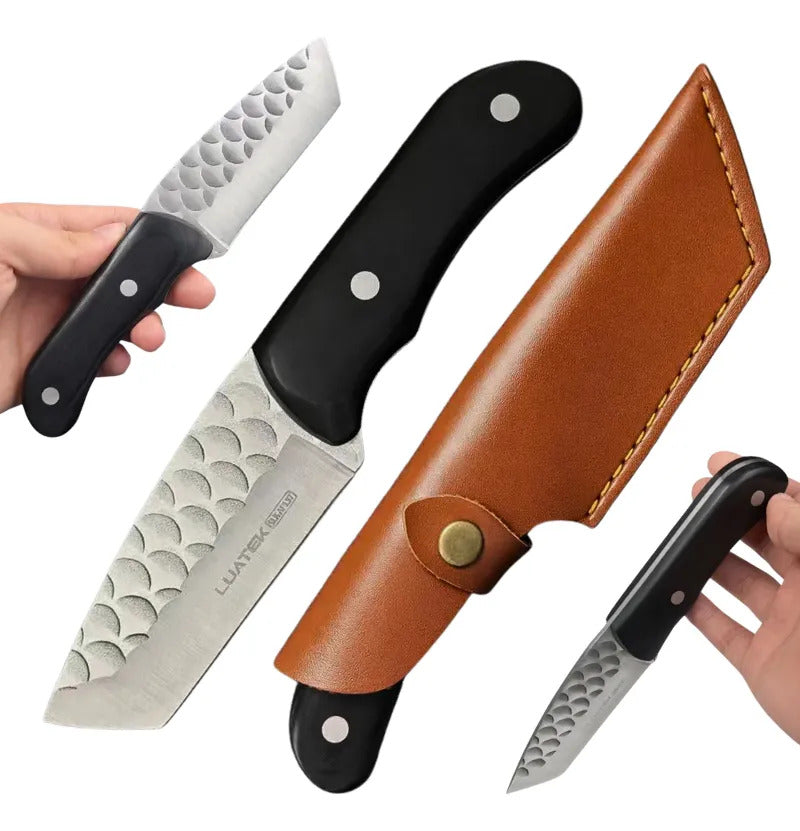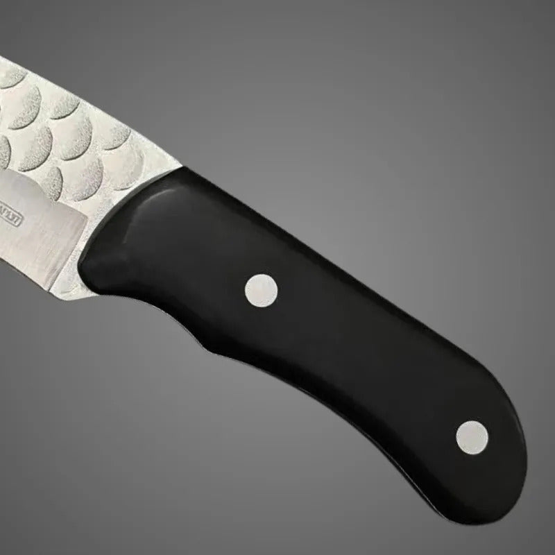 Faca Cutelo 20cm Inox Cabo Madeira + Bainha Couro Preto