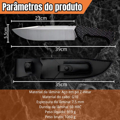 Faca Leonidas Sobrevivência 39cm Aço Z-Wear G10 + Bainha