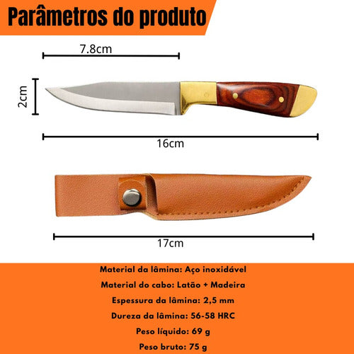 A/O Mini Faca Fulltang 16cm Cabo Madeira + Bainha Couro é uma faca de alta performance para uso em campo, caça, pesca e atividades ao ar livre.
