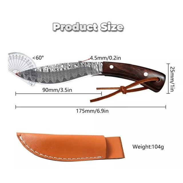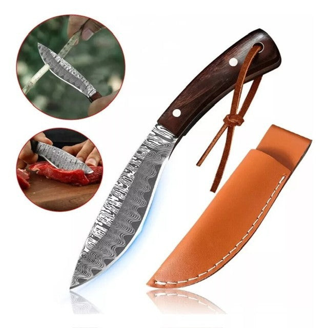A/O Mini Faca Pena de Falcão Estilo Damasco é uma faca de alta performance para uso em campo, caça, pesca e atividades ao ar livre.