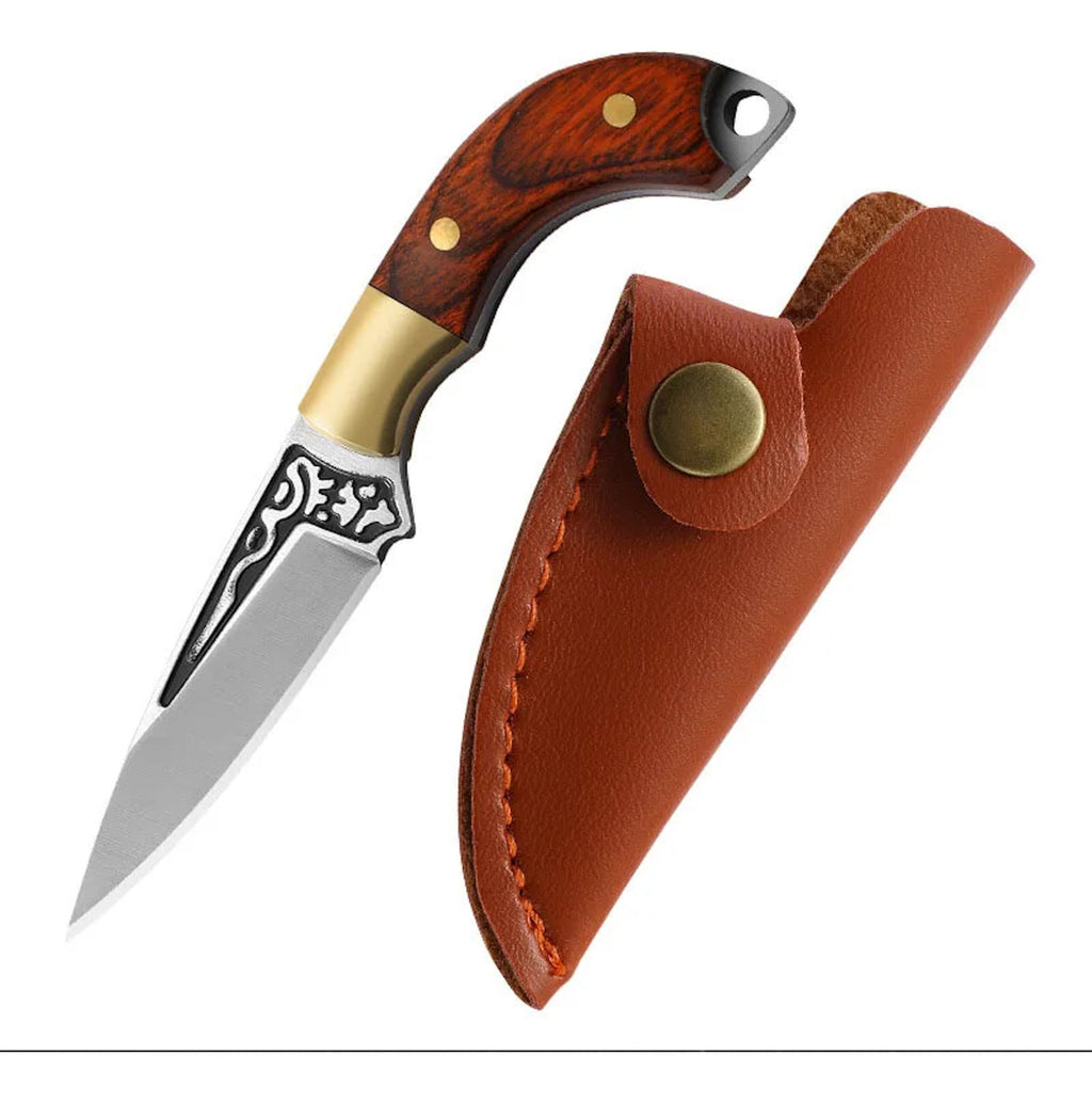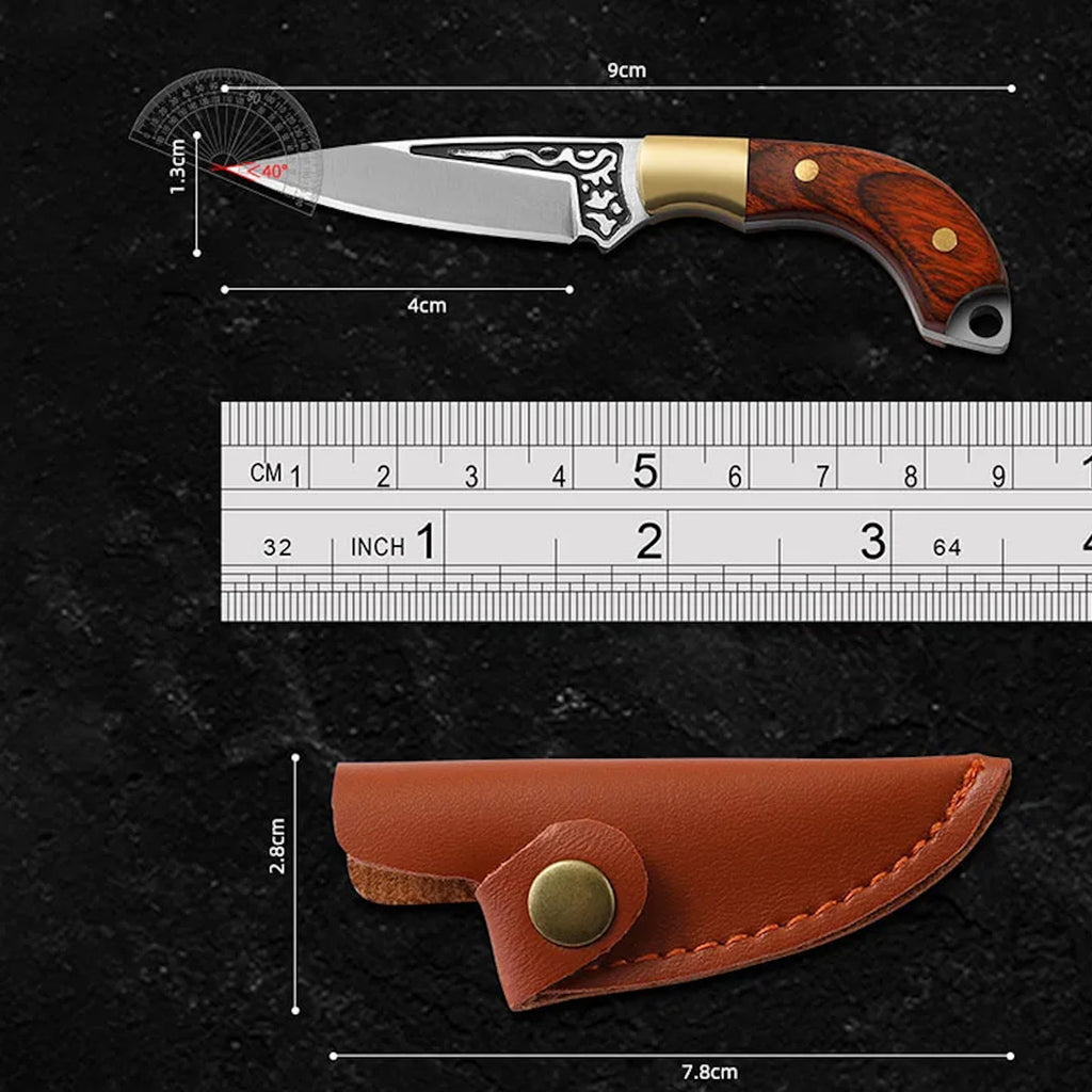 Miniatura Faca Chaveiro Cutelo Fulltang + Bainha Couro